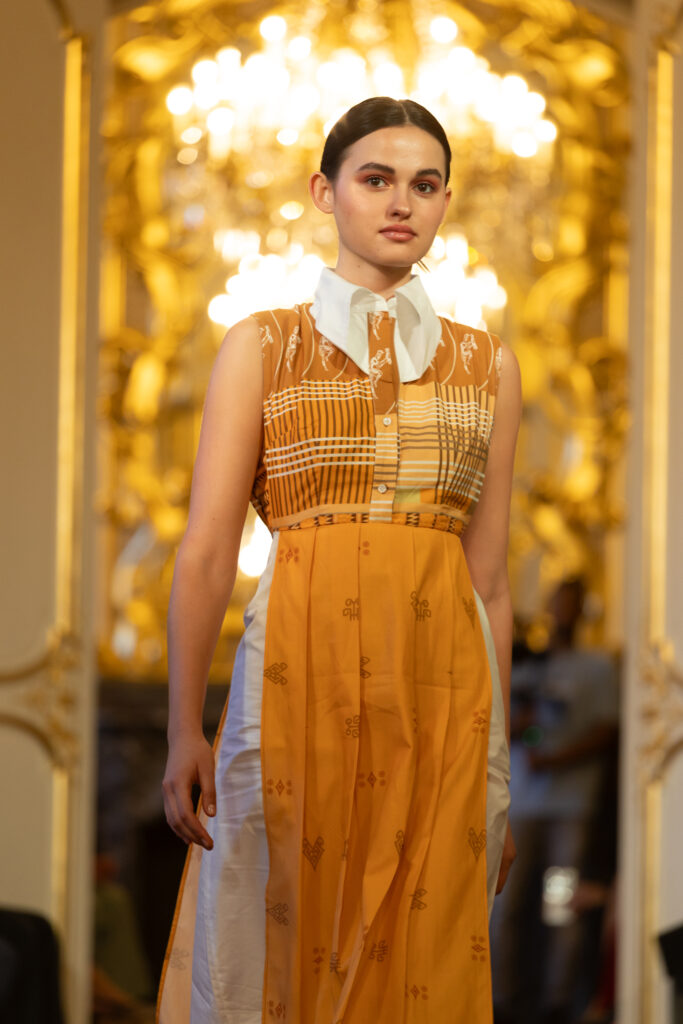 Through a masterful use of textiles, intricatedetailing, and ornamentation rooted inIndonesian craftsmanship, each look told a story of origin, pride, and evolution. Flowing silhouettes met structured tailoring; natural tones were juxtaposed with bold, culturalmotifs; and contemporary cuts carriedtraces of ancestral artistry.